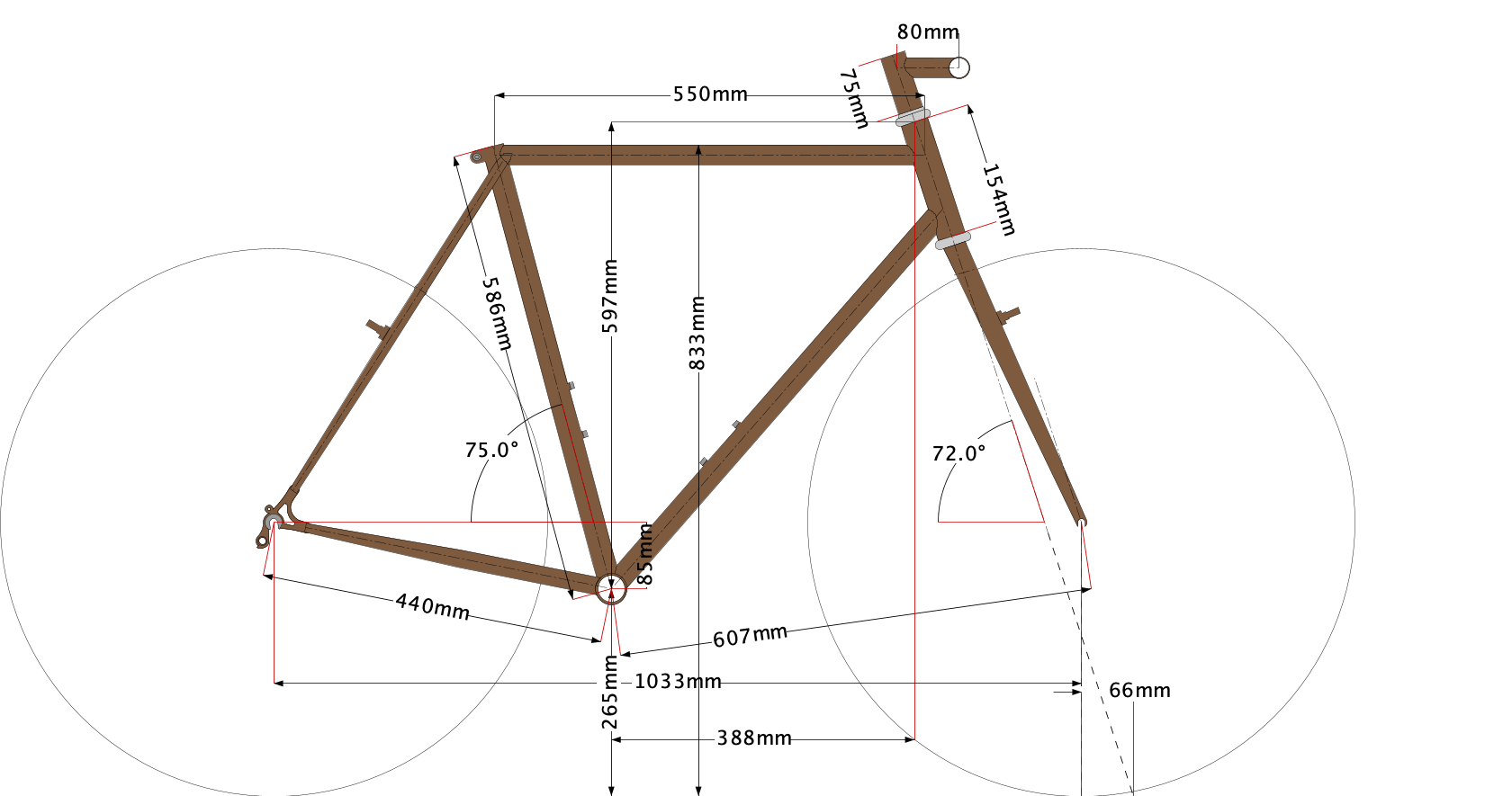 Build from Japanese Kaisei super thin walled tubing mixed with a Italian Columbus downtube this is an all road bike intended for mythical spirited rides. Fitting 38mm tyres + fenders it will ride smooth as melting butter on tarmac but is also capable of detouring into the wild (within reason), whenever you're bored of the monotony of road riding.